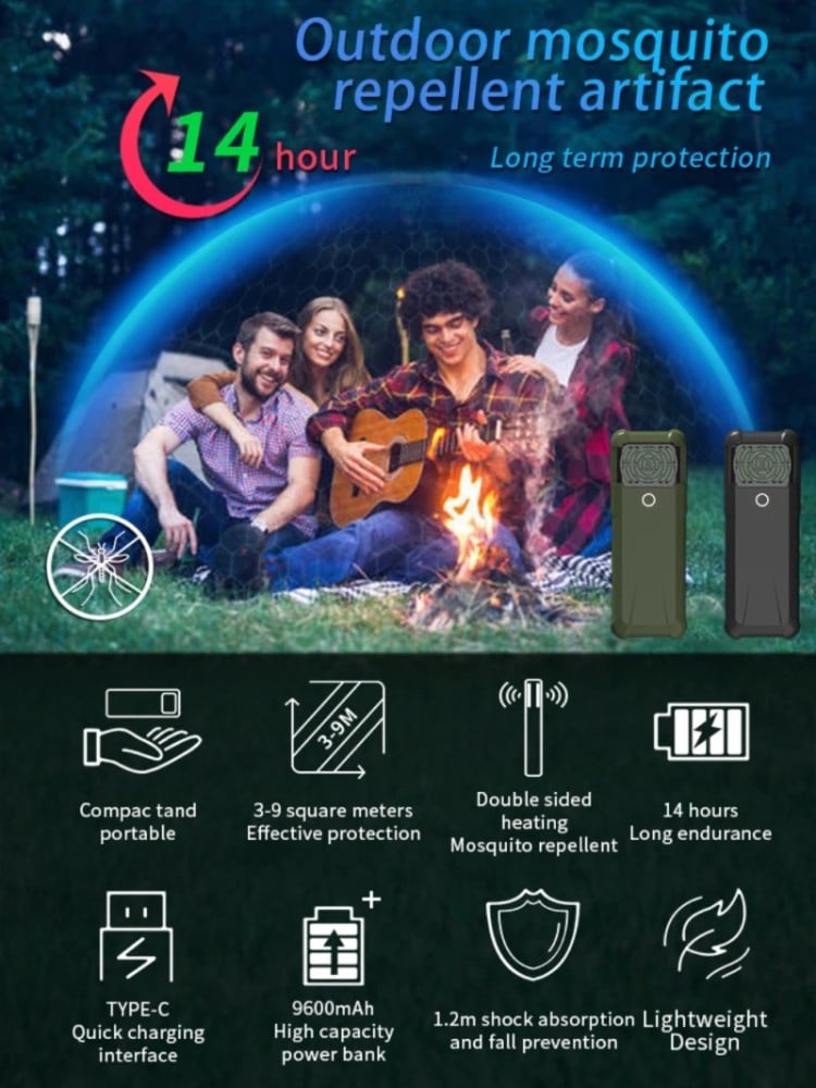 خلك مستكشف وبدون لسعات: مبيد حشرات قابل للحمل مع حماية موسعة (حتى 19 ساعة) وباور بنك مدمج! ✨