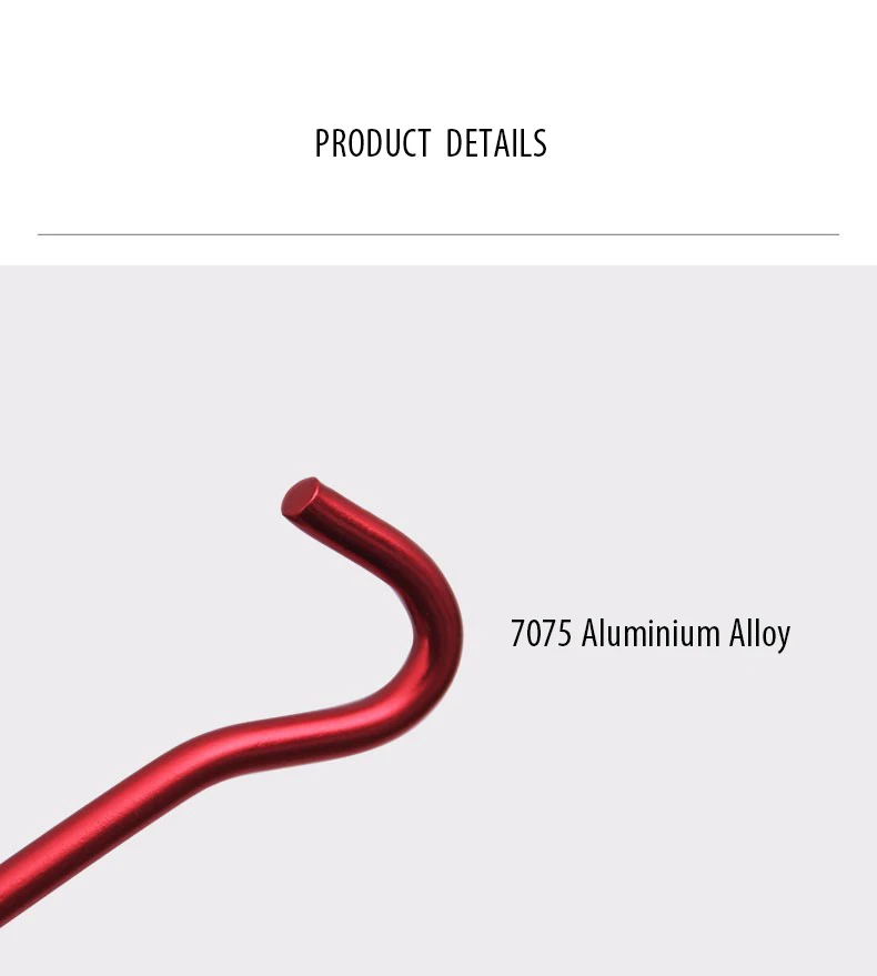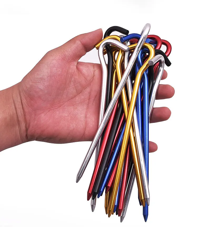 خفيفة الوزن وقوية: مصنوعة من سبائك الألومنيوم 7001 الممتازة، توفر أوتاد الخيمة هذه قوة استثنائية دون أن تثقل كاهلك.