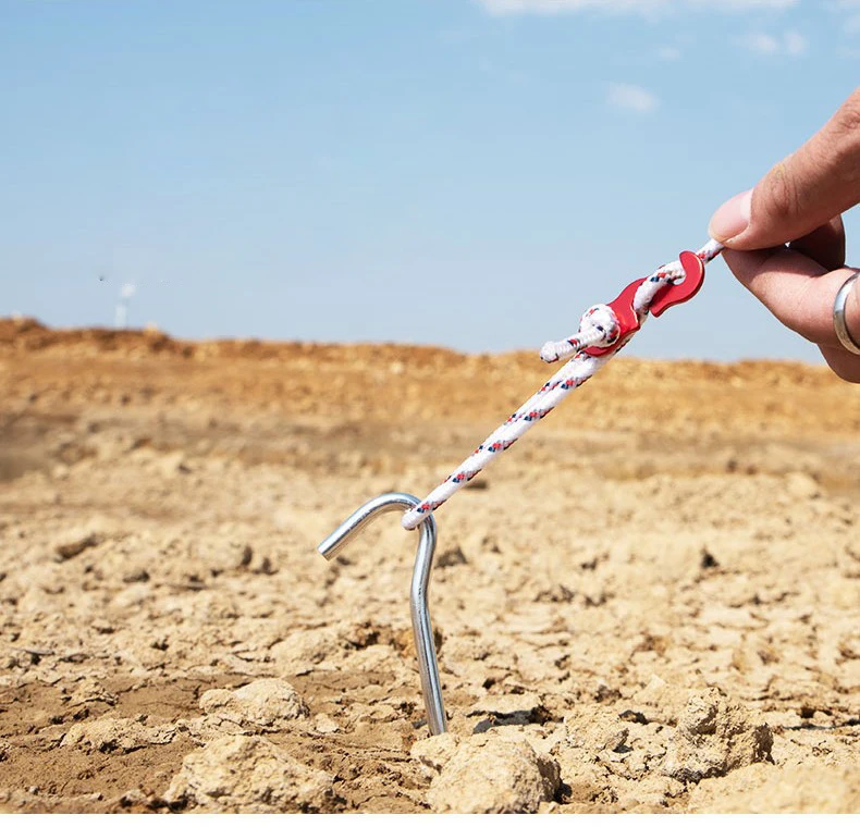مرساة آمنة: يضمن تصميم مشبك الحبل تثبيتًا محكمًا لخيمتك أو قماش القنب، حتى في الظروف العاصفة.