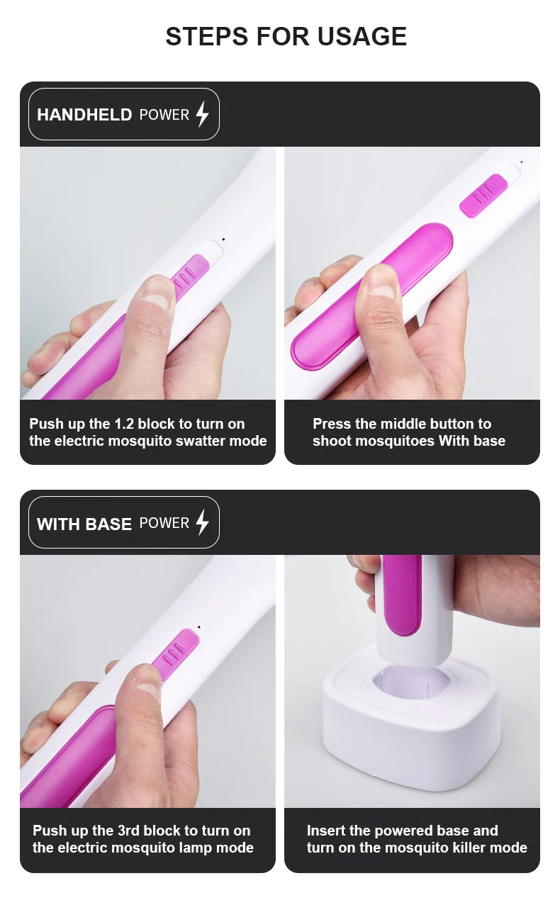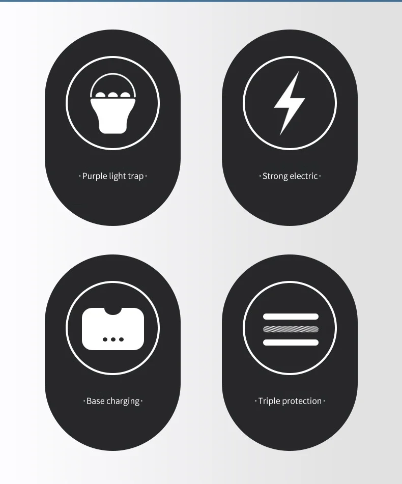 - High-voltage electric grid: Instantly kills mosquitoes on contact.