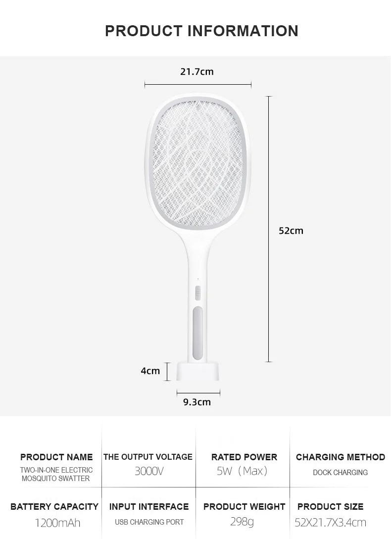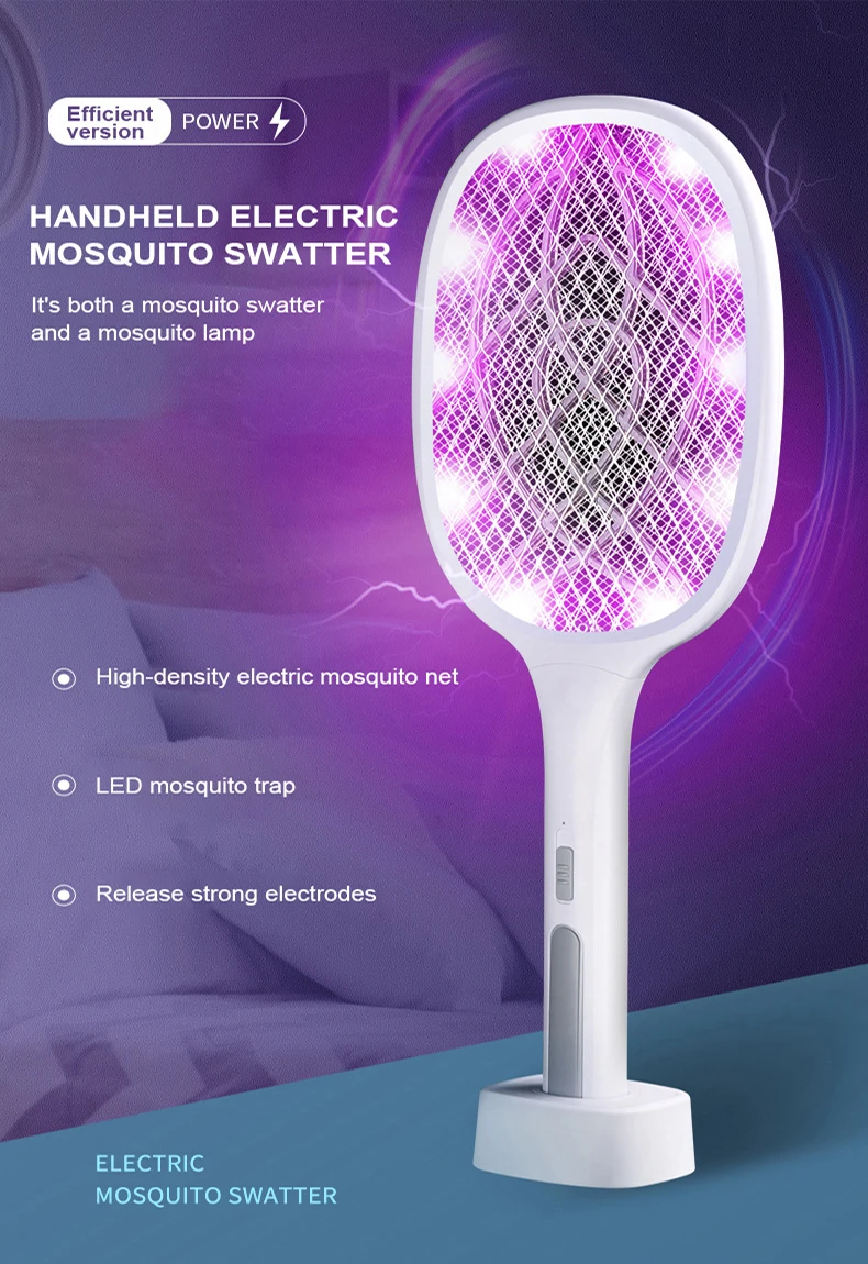 - Dual Functionality: Combines a mosquito zapper lamp with a portable electric swatter.