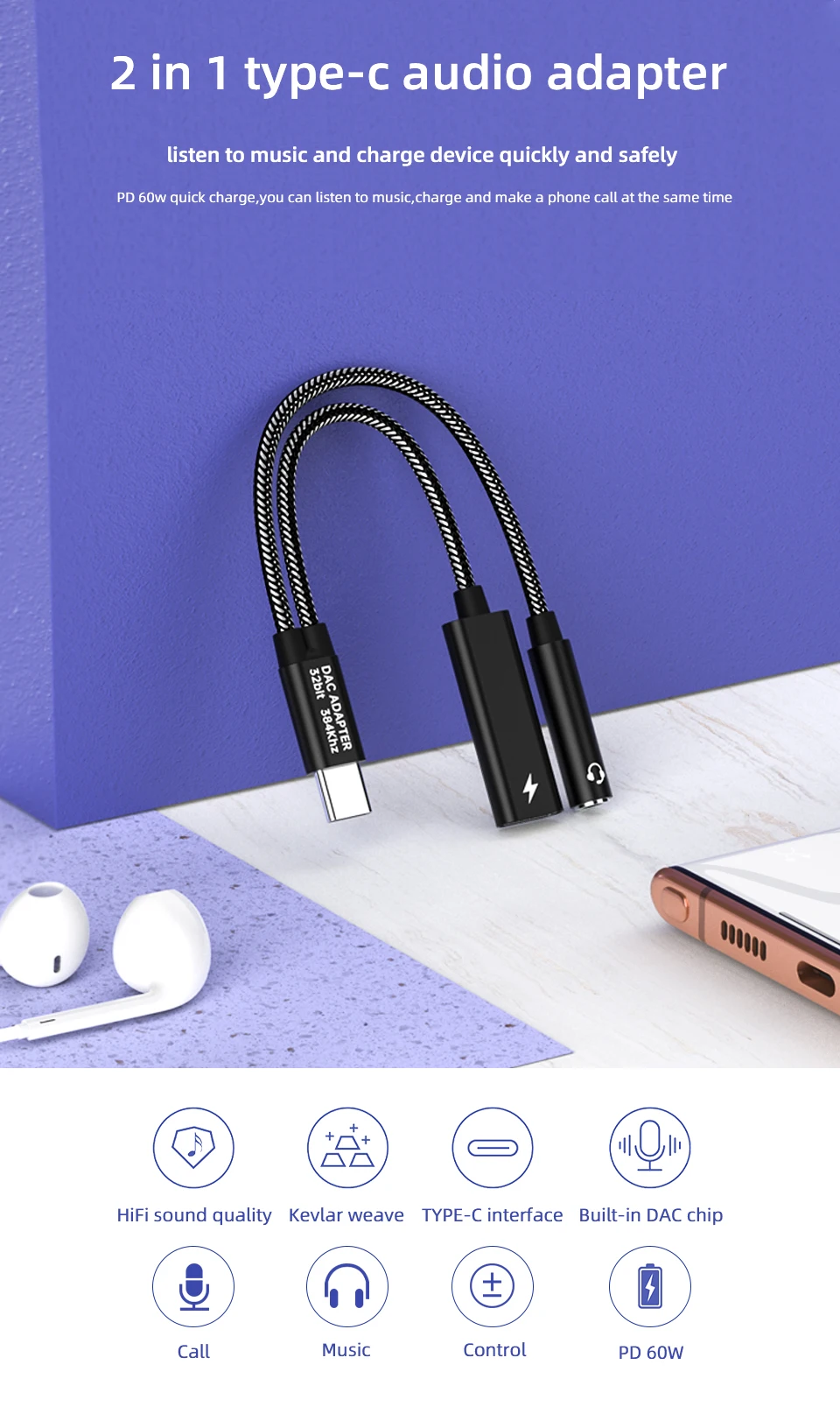 3. 60W PD Fast Charge: Support charging and listen/call at the same time,support 60w max PD fast charging for the phones.