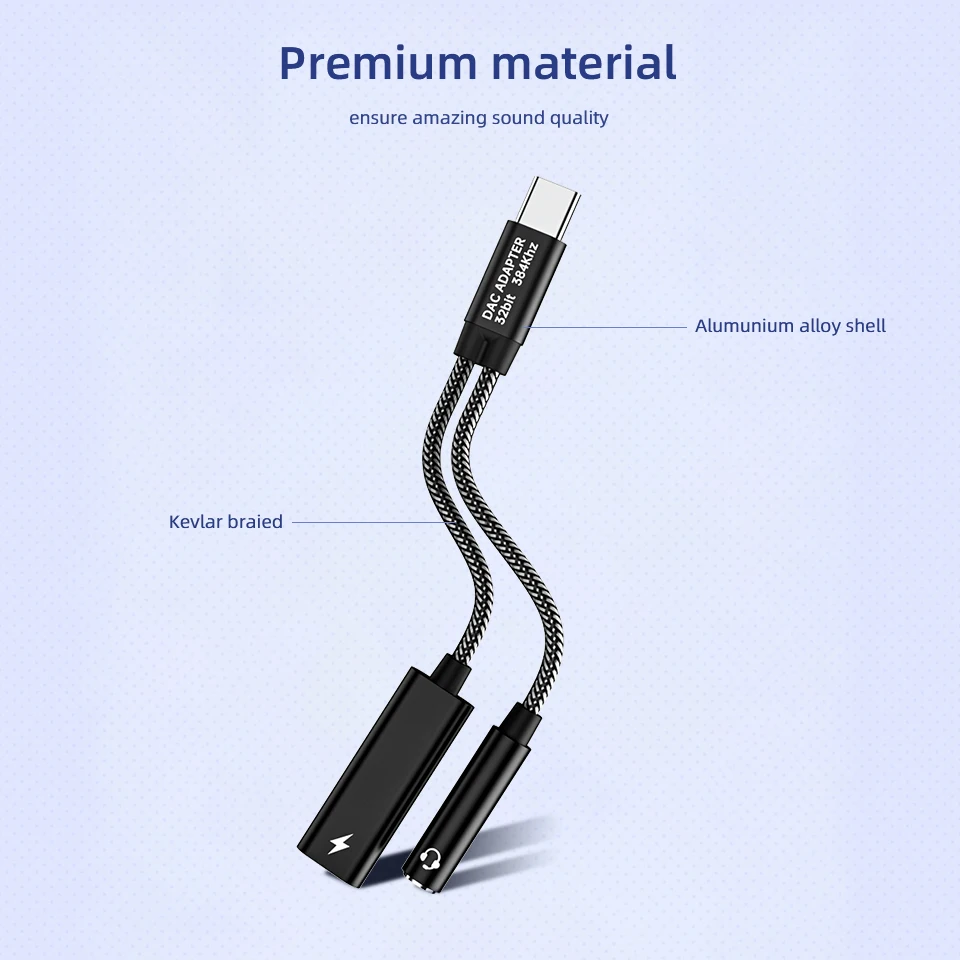 2 in 1 USB Type C To 3.5mm + Type C Digital Headphone Adapter