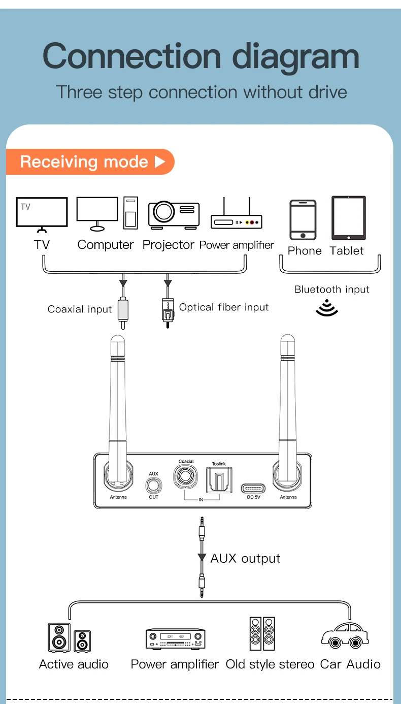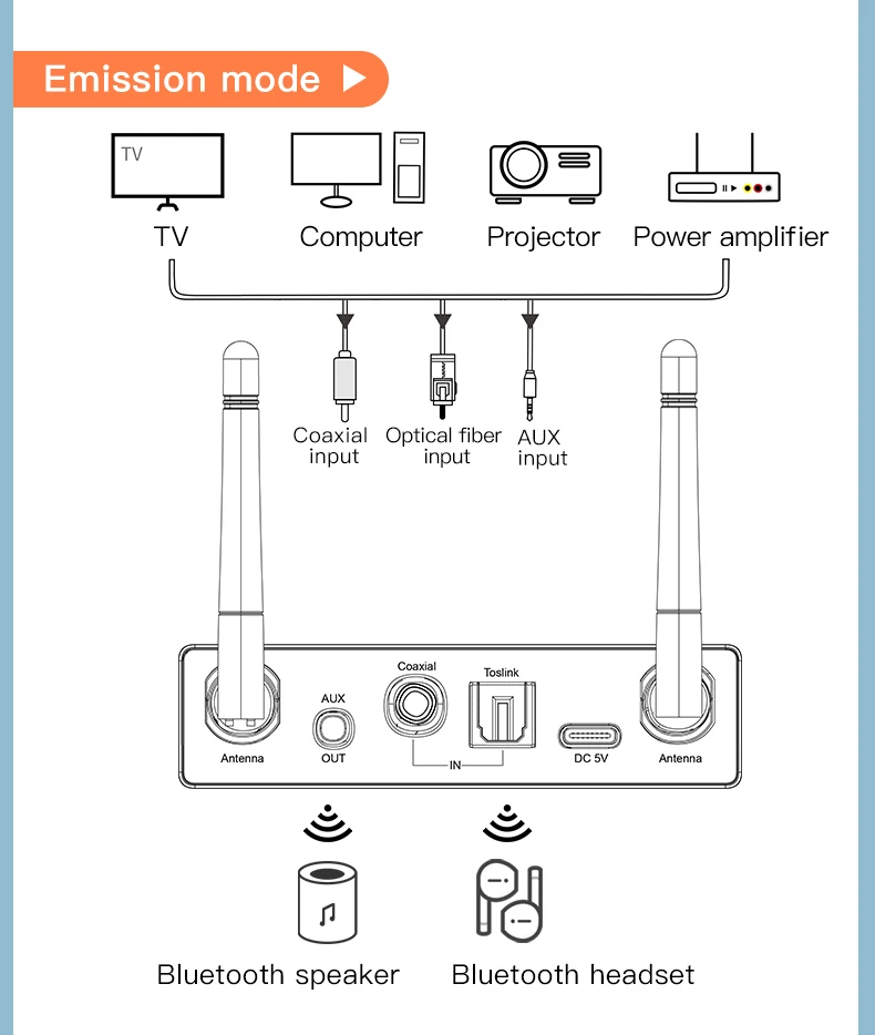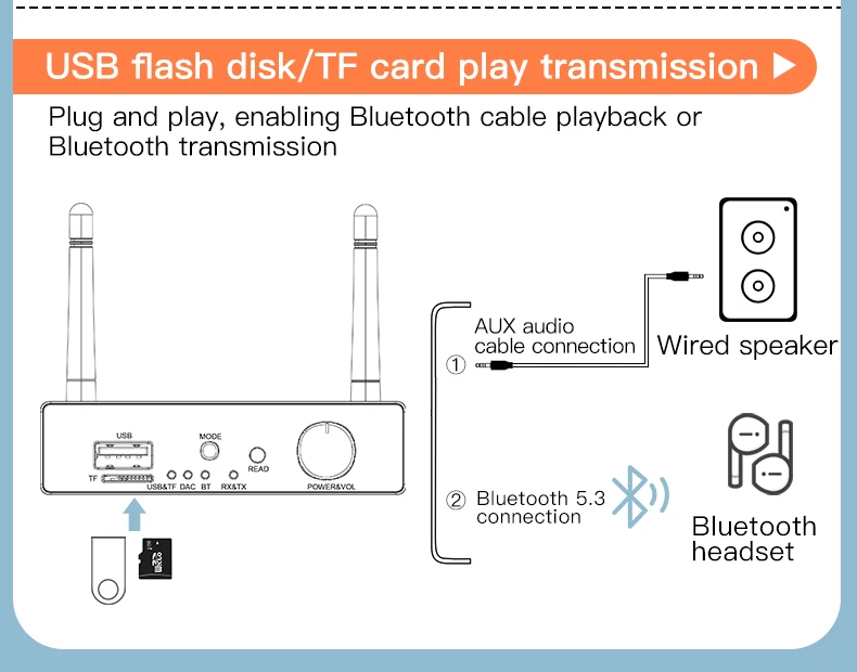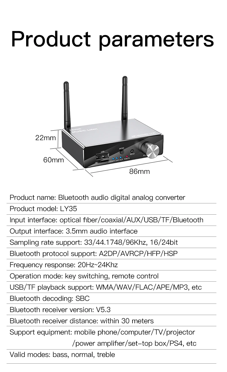 Bluetooth 5.3 audio adapter, DAC converter, USB audio player, TF card audio player, Bluetooth transmitter, Bluetooth receiver, 30M Bluetooth adapter, wireless audio adapter, optical audio converter.