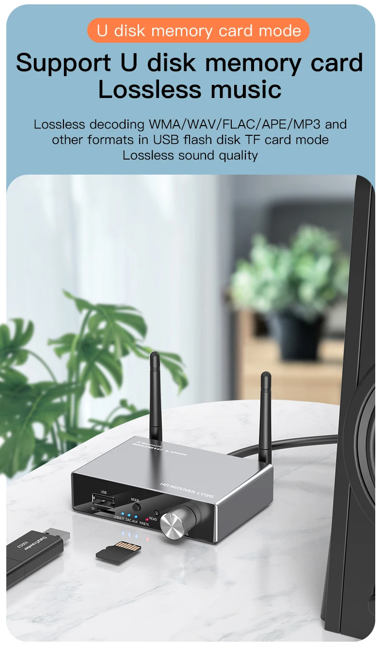 - USB & TF Card Playback: Direct MP3/APE/FLAC/WAV/WMA playback.