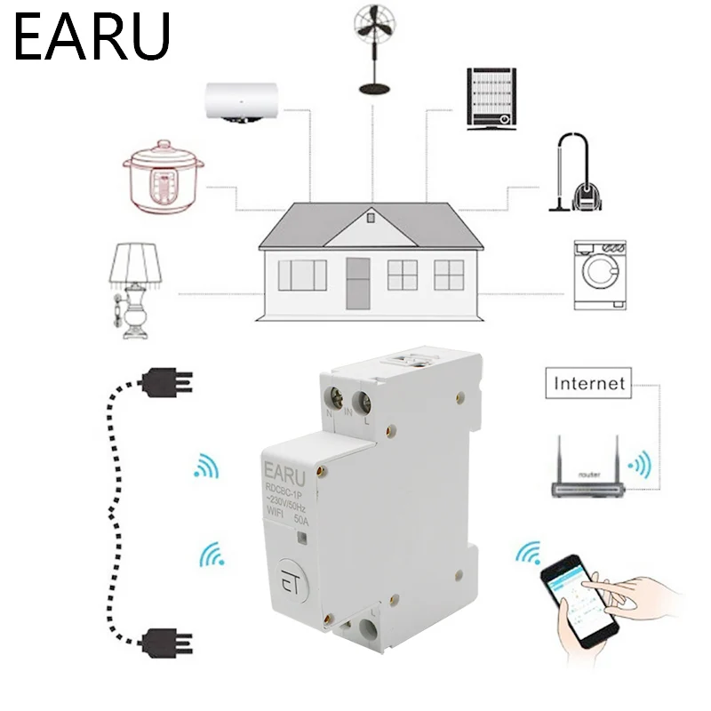 EARU, RDCBC-1P, 18mm, 19mm, Wi-Fi Smart Switch, eWeLink, DIN Rail, Smart Relay, Abhir online, Timer Switch, Remote Control, Alexa, Google Home, Home Assistant, Smart Circuit Breaker, MCB