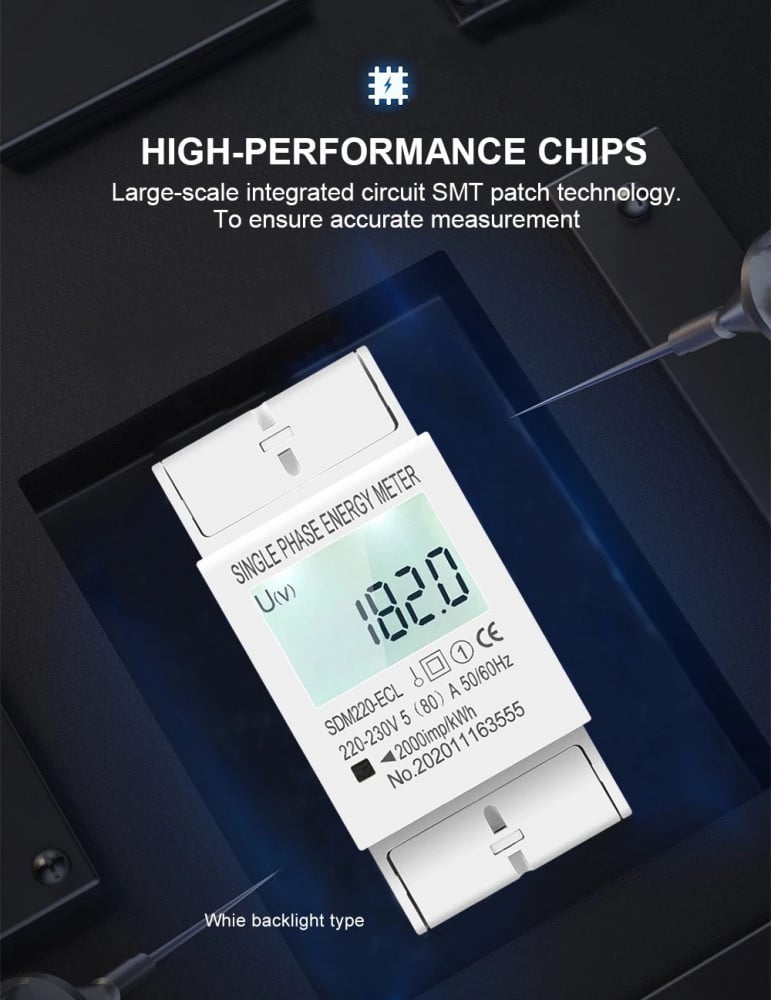 The TOMZN SDM220-ECL is a commercial-grade meter designed for reliability. Its primary advantage is accuracy; built with high-performance, large-scale integrated SMT chips, it provides Class 1 accuracy for dependable readings. The clear, bright white backlit LCD ensures readability even in dark electrical cabinets. Unlike smart devices, its simplicity is its strength—there is no app to crash, no Wi-Fi to disconnect, and no complex setup. Its non-volatile memory and tamper-proof counter make it the most reliable solution for billing or long-term monitoring.