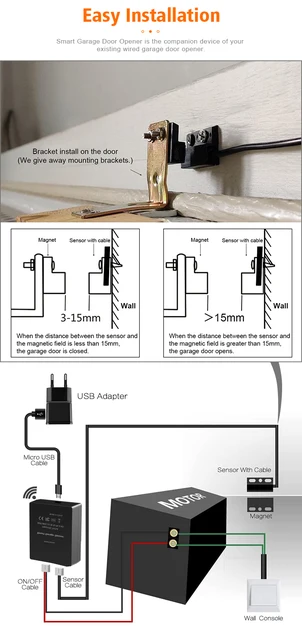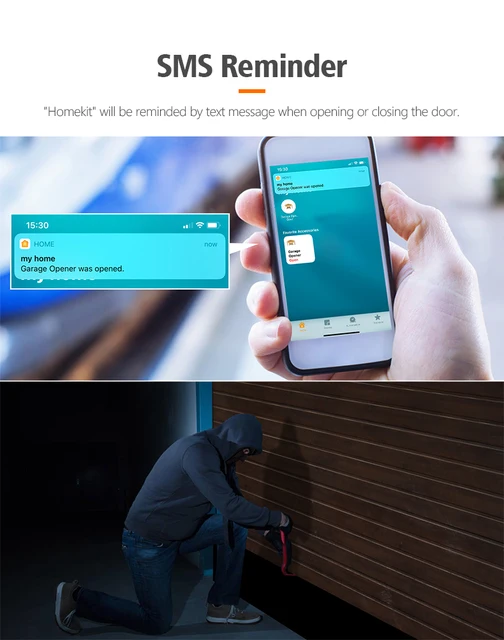 Voice control: Garage Door Opener is compatible with Apple HomeKit, Apple Watch, Siri. Control your smart Opener through voice commands, easily turn on/off (E.g. "Hey Siri, open Garage Door ")