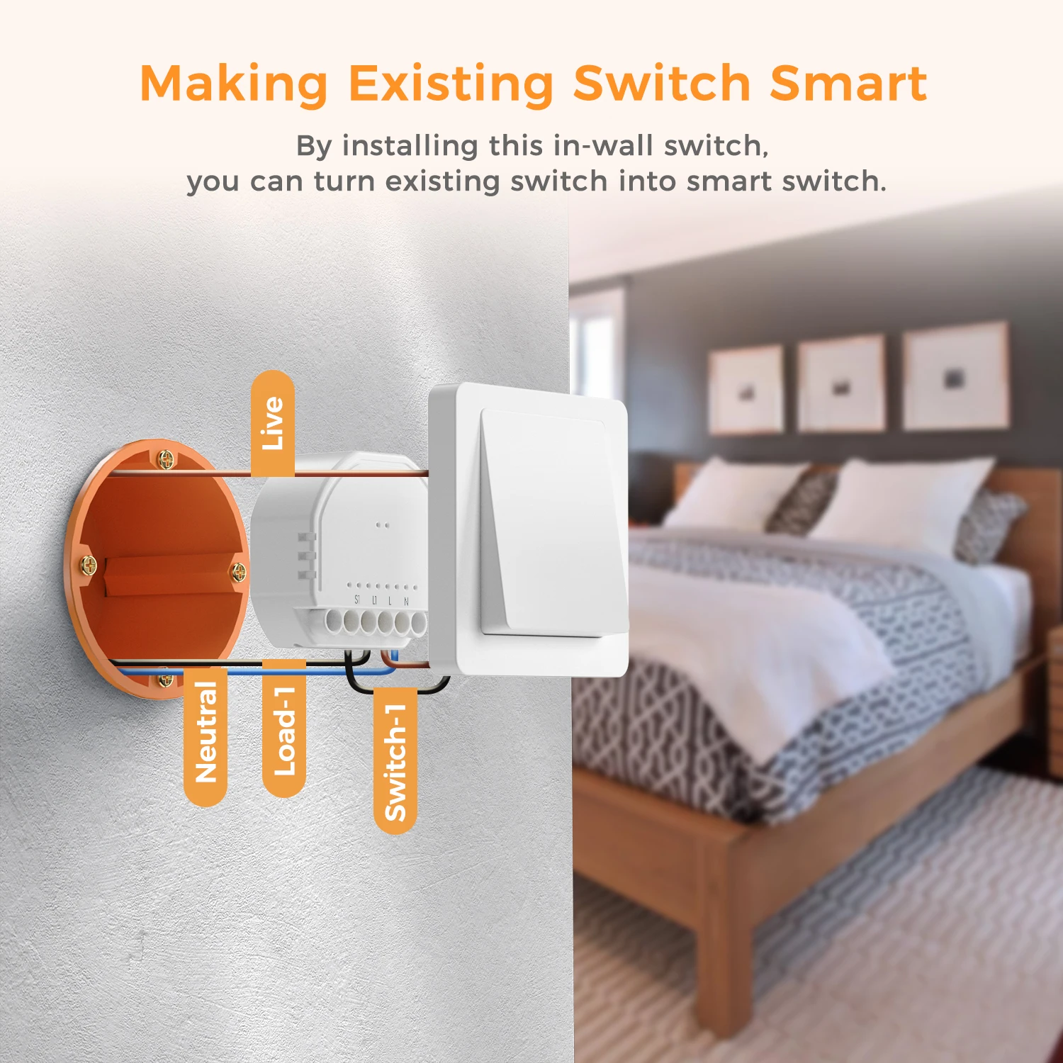 By installing this in-wall switch. you can turn existing switch into smart switch.